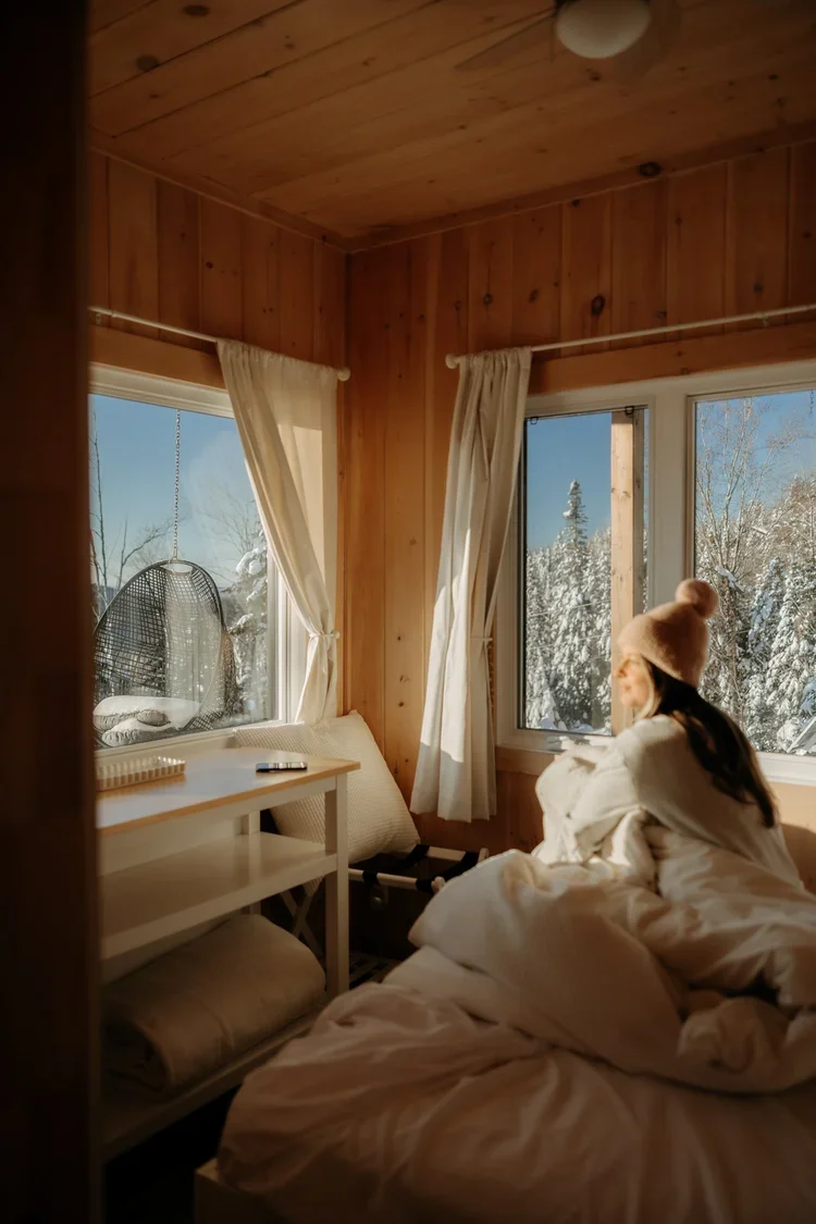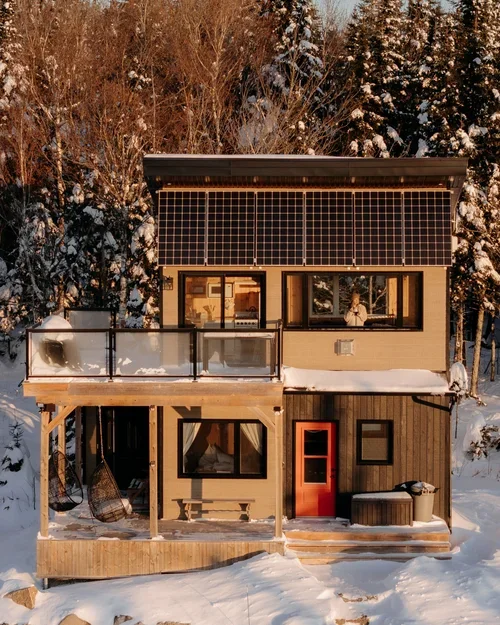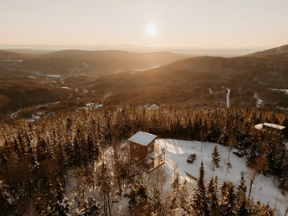 Mandate: Capture the feeling of staying in a solar-powered, snow-surrounded, hilltop micro-chalet in Quebec.
